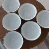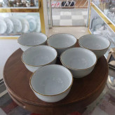 پیاله ترشی خوری چینی لب طلا ،ابعاد قطر 9 سانتی متر تقریبا ارتفاع 4.5 سانتی متر و کفه 4.5 سانتی متر، درجه یک از کارخانجات چینی تقدیس ، درجه سختی نوع A و کیفیت درجه یک ، قابل شستشو در ماشین ظرفشویی شویی ، این قیمت شامل 6 عدد پیاله میباشد.