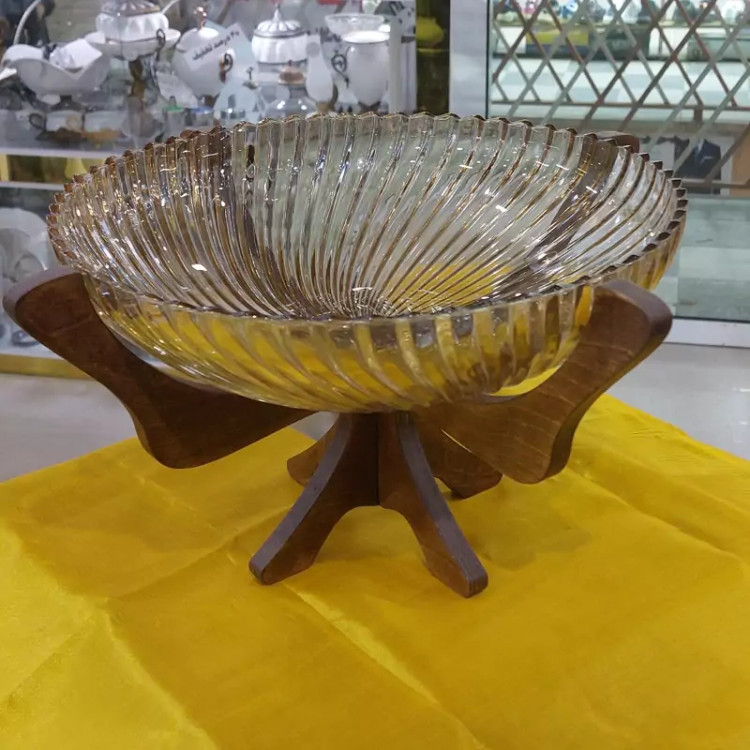 این میوه خوری دارای یک پایه چوبی و ظرف پیرکس برند سانچی و رنگ شامپاینی میباشد ، قطر دهانه ظرف 28 سانتی متر هست ، پایه چوبی از جنس چوب راش جنگلی و مقاوم در برابر ترک هست .