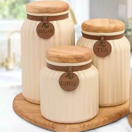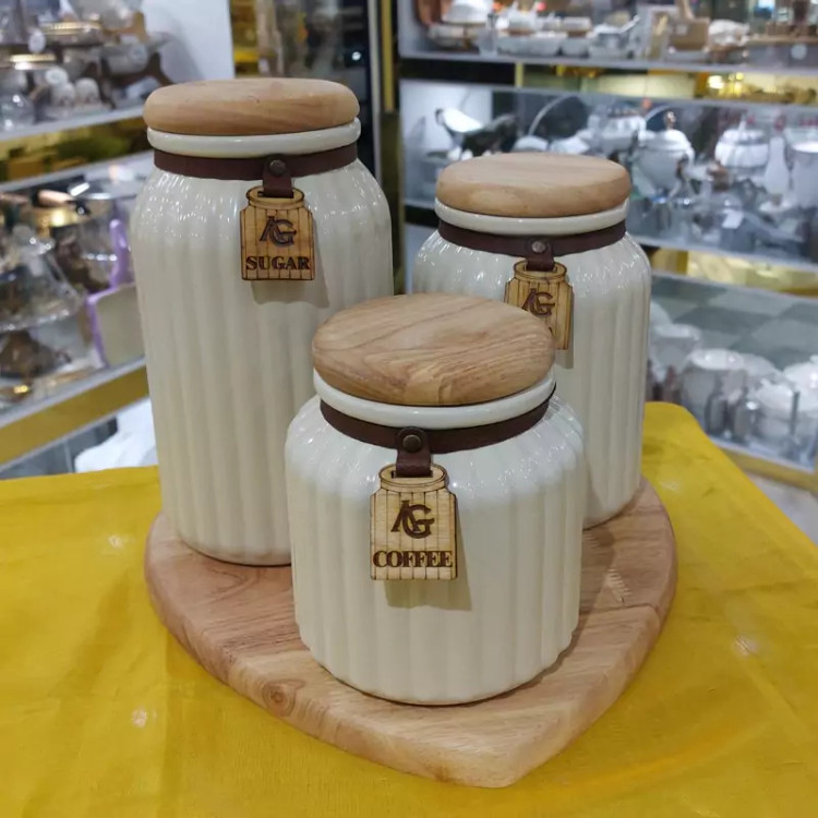قند و چایی 3 تایی چوبی، برند آوین گلس
