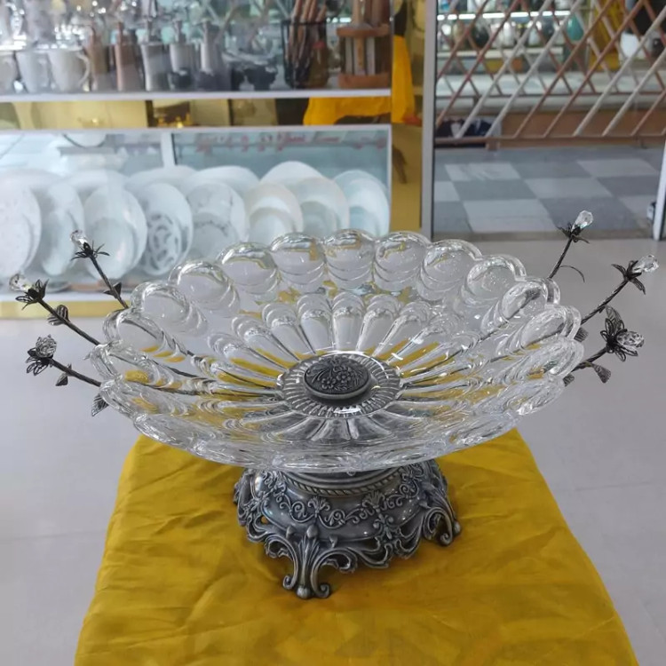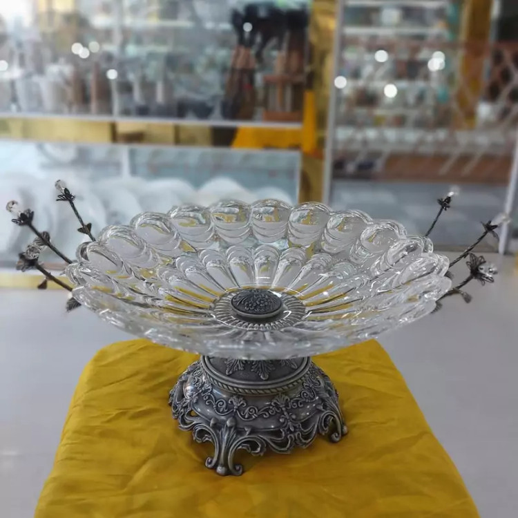 این میوه خوری برند سیلویا هست ،ظرف پیرکس روی کار با ظرف فلزی به وسیله پیچ به هم وصل شده هست