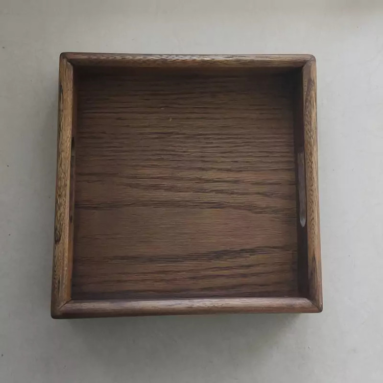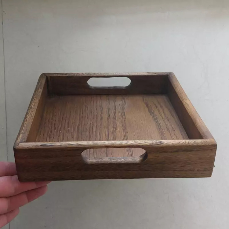 سینی مربع چوبی ، ابعاد ۲۶ سانتی متر ، لبه ۴ سانتی متر ، چوب راش جنگلی و یک تیکه ، روکش نانو برای ضد آب شدن