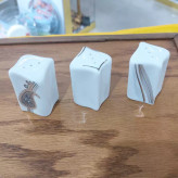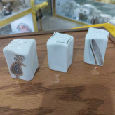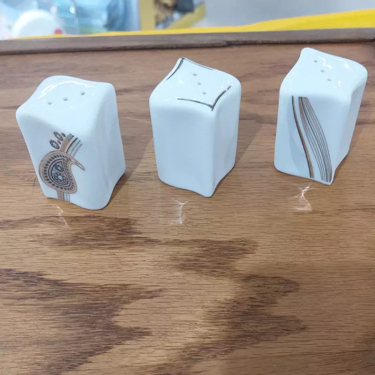 این قیمت شامل 6 عدد نمکدان هست ، ارتفاع نمکدان 5 سانتی متر و هر ضلع آن 3 سانتی متر میباشد ، مدلهای نمکدان از راست چند خطی مدل هاوین ، وسطی لب طلایی و سمت چپ ترنج میباشد ، این چینی ساخت کارخانجات چینی طوس مشهد هست و کیفیت درجه یک است.