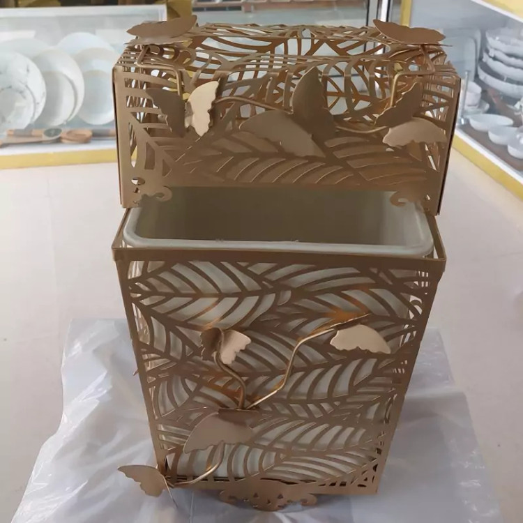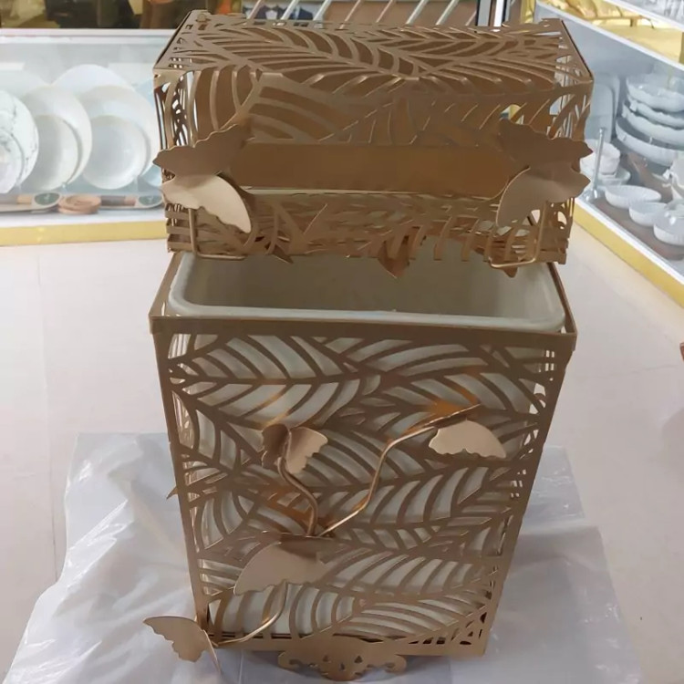 سطل و جا دستمالی ۴ گوش در دو مدل گلدار و ساده ، طلایی و مات ، سطل دارای محفظه جدا و برند ریور