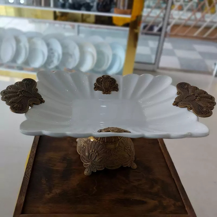 شیرینی خوری مستطیل پیوتر و چینی برند ریور