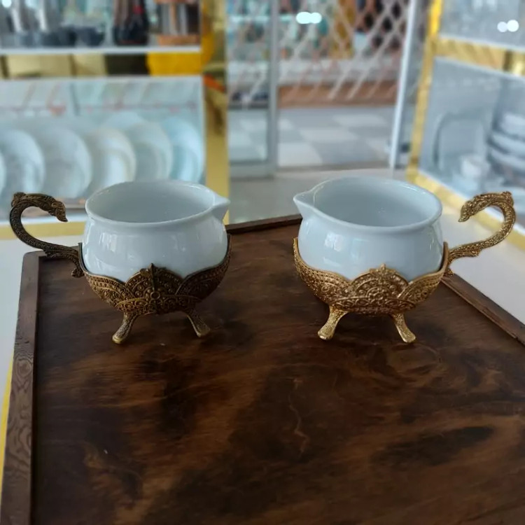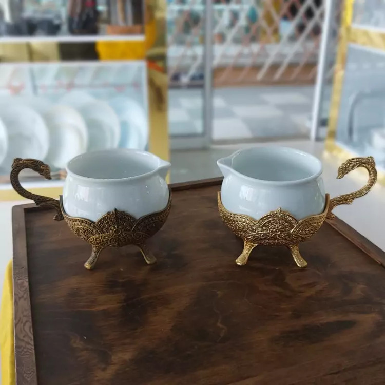 سس خوری سلطنتی پیوتر و چینی در دو رنگ طلایی و آنتیک در نظر داشته باشید برای ثبت سفارش کالا حتما در گفتگو رنگ مورد نظر رو اعلام بفرمایید تا براتون ارسال بشه ، ساخت کشور چین ، از خرید این محصول پشیمان نخواهید شد کار خاص و تک هست