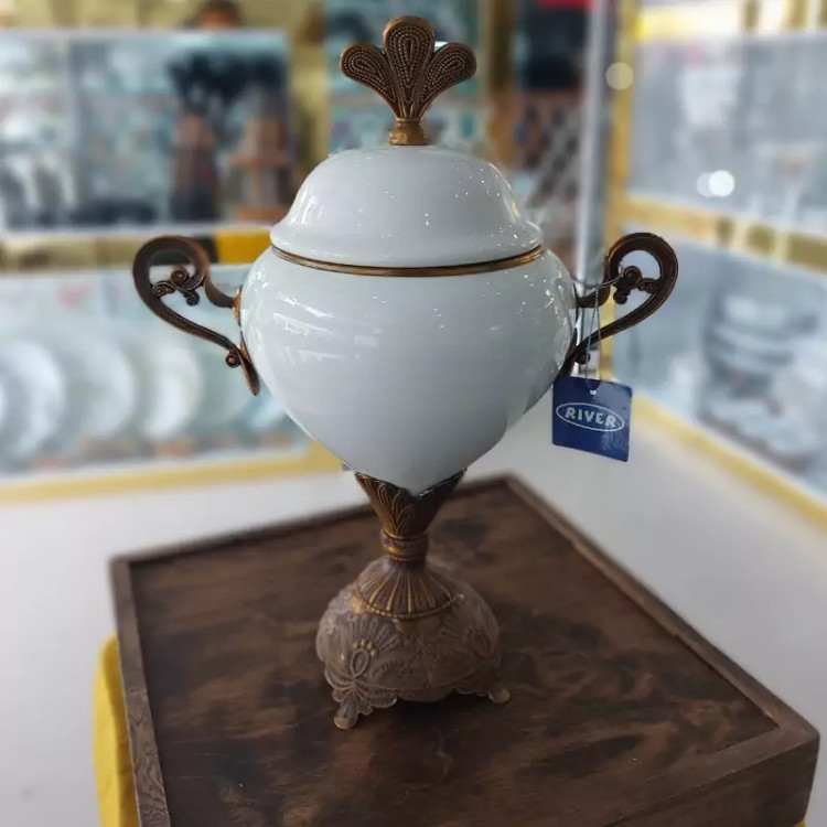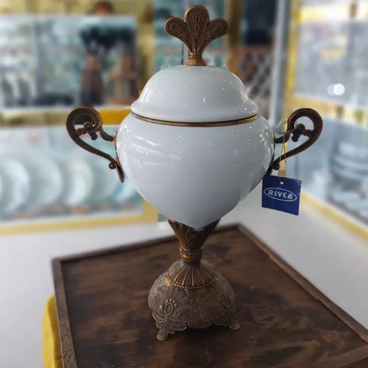 شکلات تاج دار سلطنتی پیوتر و چینی برند ریور ساخت کشور چین ، ارتفاع 36 سانتی متر، سياه قلم کاری شده