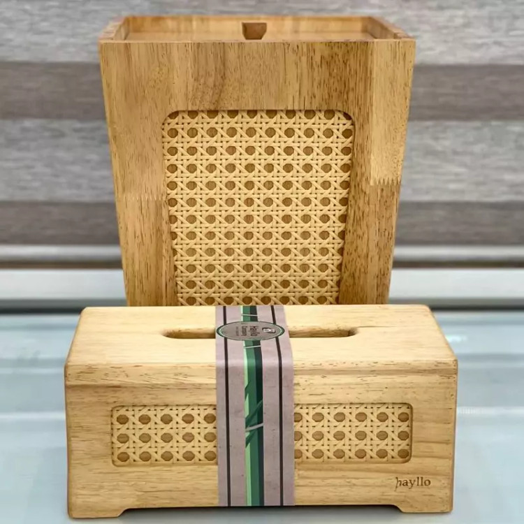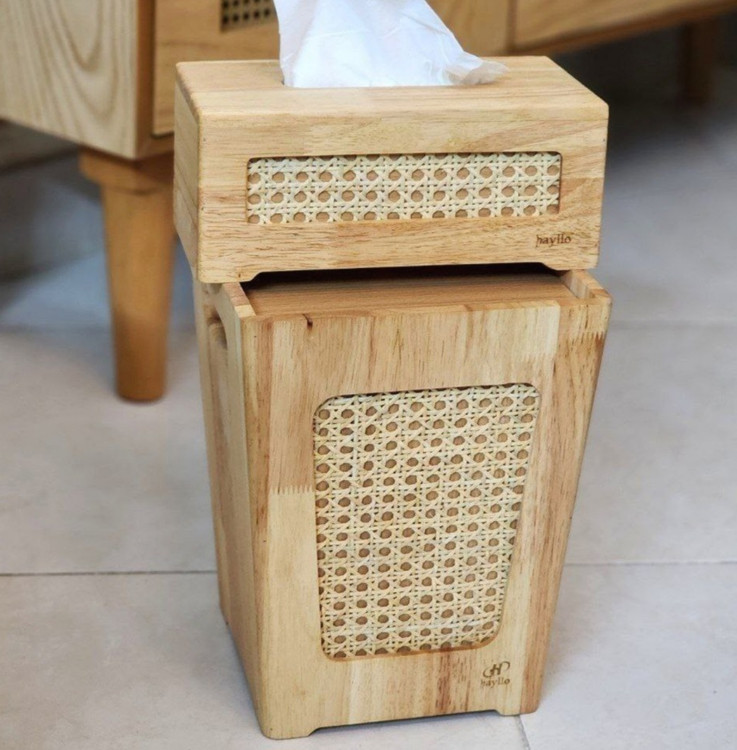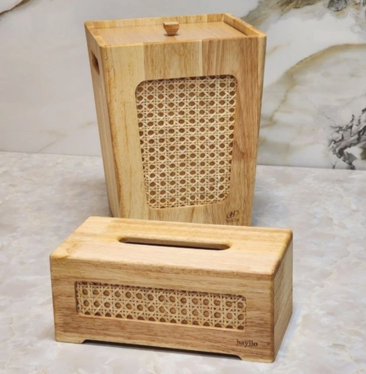 ست سطل و جا دستمالی چوبی و حصیر