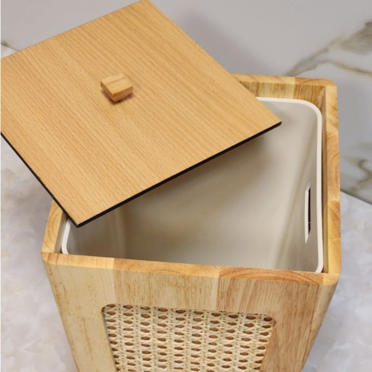 این سطل دربدار میباشد و دارای محفظه پلاستیکی جدا شونده در داخل سطل است ، درب جا دستمالی از قسمت پایین بصورت کشویی میباشد ، جنس چوب راش جنگلی و ضد آب میباشد.