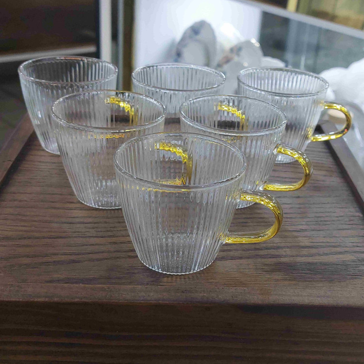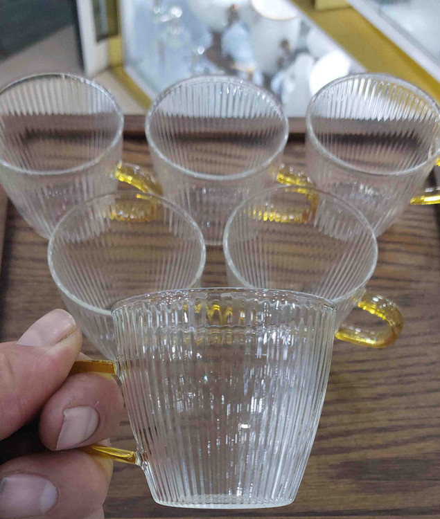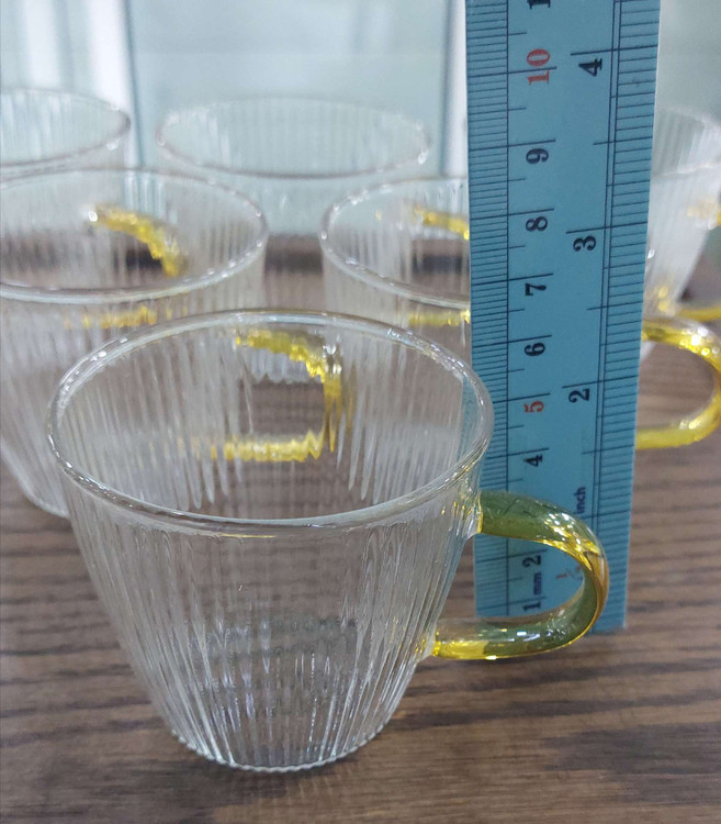 ست فنجان ۶ عددی پیرکس شیاردار دسته رنگی dm17