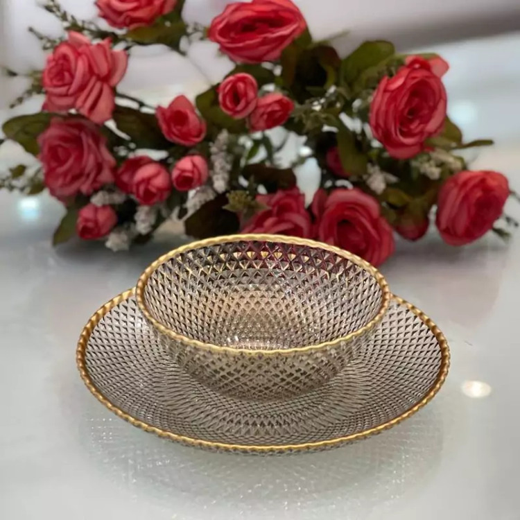 پیاله و پیش دستی لب طلا شامپاین