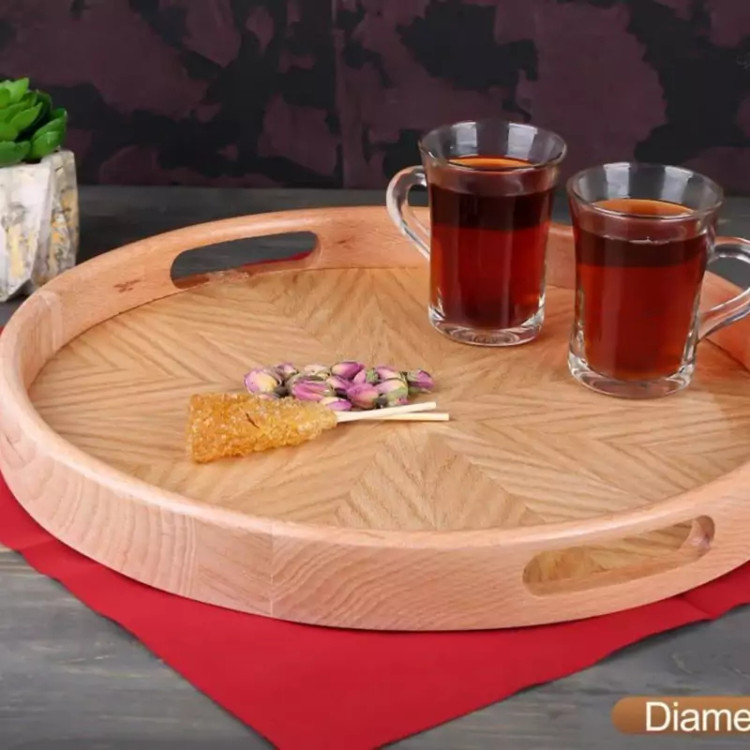 سینی چوبی گرد ، لبه دار ، جنس چوب راش جنگلی ، روکش نازک از نانو برای ضد آب شدن سینی