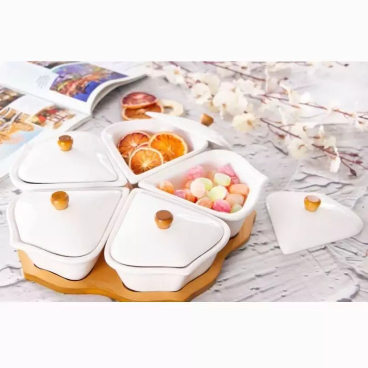 ظروف رومیزی 5 تایی چینی و چوب